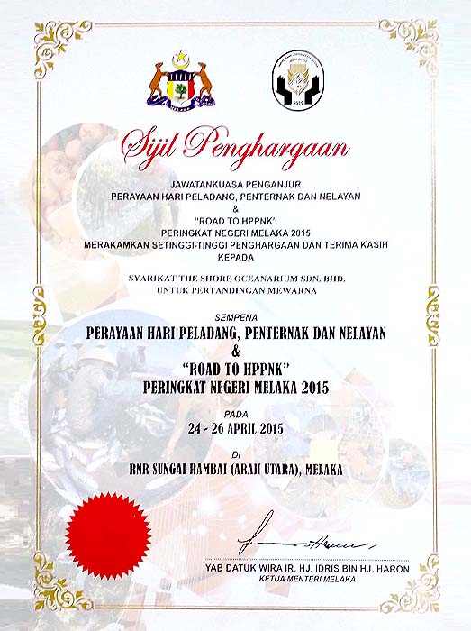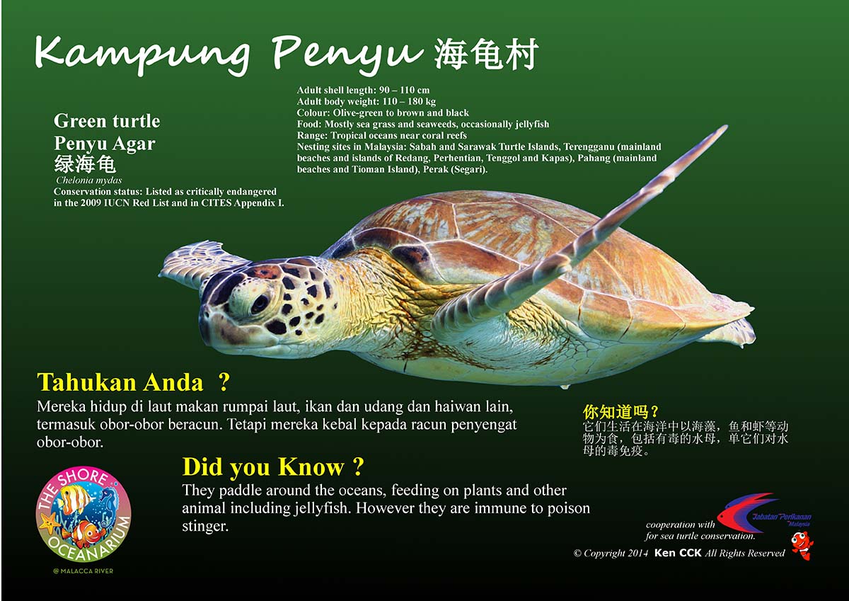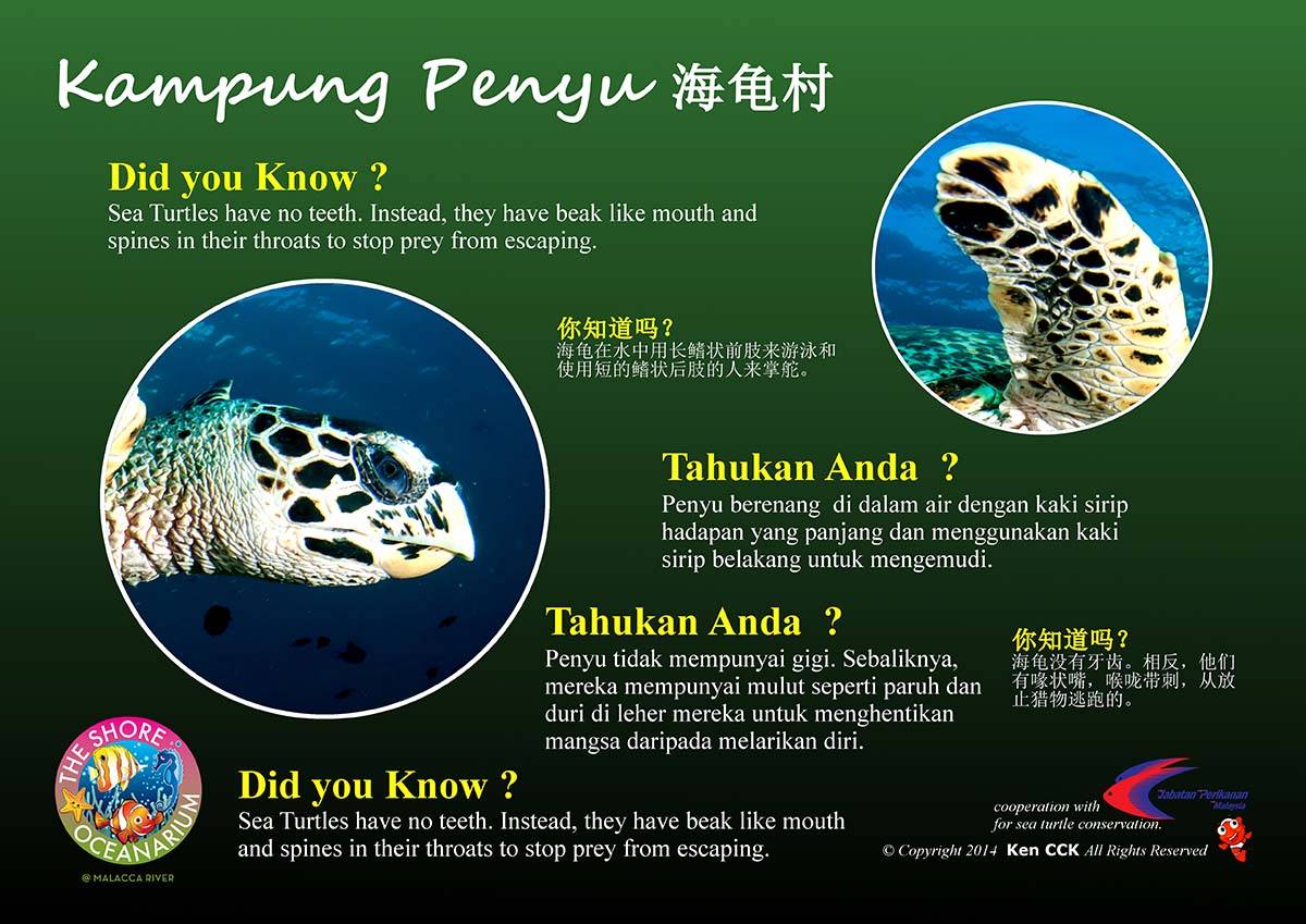 The Shore Oceanarium working with Fisheries Department Malaysia (Jabatan Perikanan Malaysia) in Sea turtle conservation many activities such as co-organiser colouring contest in related to sea turtle conservation & marine life protection.