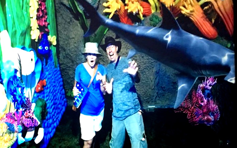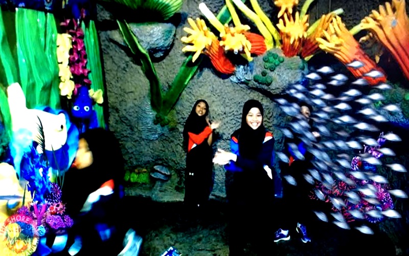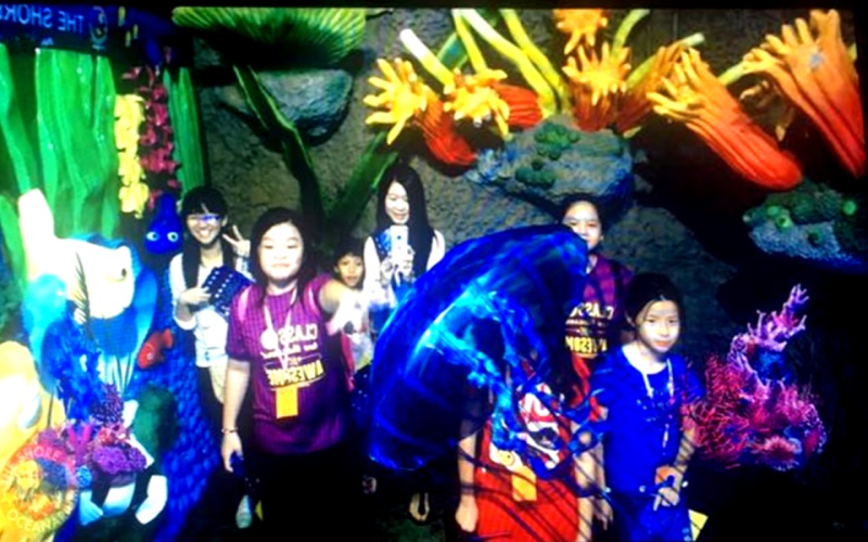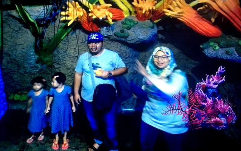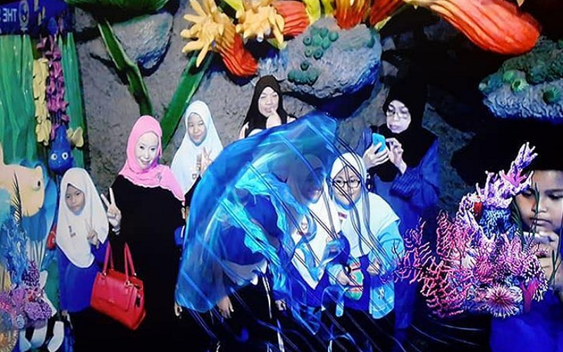 Visitor allows to photoshoot & video shoot underwater AR scene as manta ray, hammer shark, great white & group of a marine creature swimming around them generated by our AR Reality system in our Augmented Reality Hall.